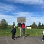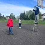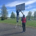Pakeitę suplyšusius ar iš vis trūkstamus tinklelius bičiuliai nevengė ir patys išbandyti rankos taiklumą, kur vyrukai turėjo pripažinti neabejotiną merginų pergalę.  Smagi, nuotaikinga popietė prabėgo labai greitai, o bendrystė ir padarytas geras darbas nuteikė visai puikiai.